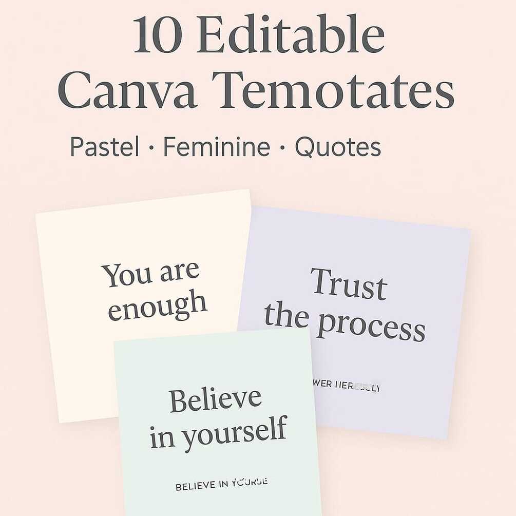 ✅ 10 Instagram quote templates (1080x1080 size) ✅ Editable in Canva Free – no Pro needed ✅ Pastel feminine design (perfect for dreamy & soft brands) ✅ Fonts, colors, and quotes can all be customized ✅ Use again & again for new content